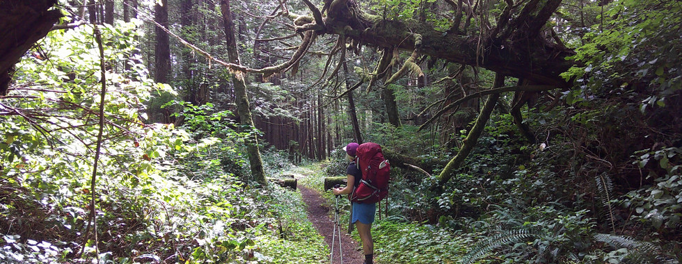 The trail wove between slick beaches of soft sand, pea gravel, and large stones—all at a slant and all with their fair share of massive driftwood obstacles—and dense inland jungles, complete with slippery, rudimentary ladders and ropes to assist with climbing and rappelling.