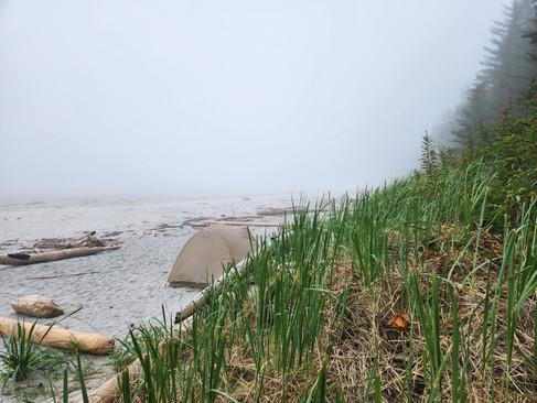With a beep, I caught an incoming message to my Garmin from my friend Saoirse, "They're lifting the coastal fire ban tomorrow mid-day." Woohoo! That meant we could start having campfires! That day we were all decidedly too tired, so we called it an early night and agreed to spark a fire after returning from Cape Scott.